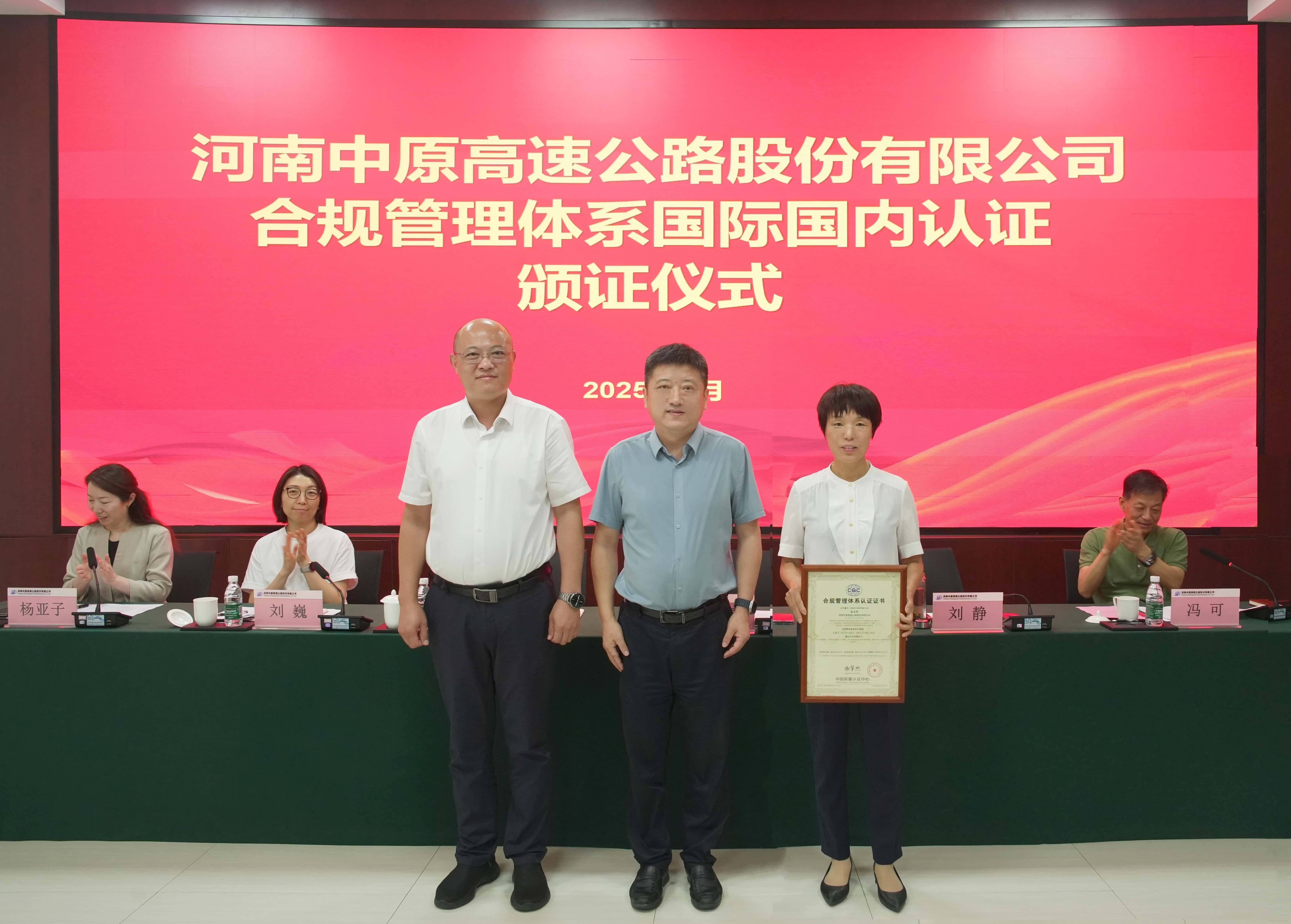 集團(tuán)黨委委員、副總經(jīng)理袁凍雷參加中原高速合規(guī)“雙認(rèn)證”頒證儀式并專(zhuān)題聽(tīng)取科創(chuàng)工作匯報(bào)